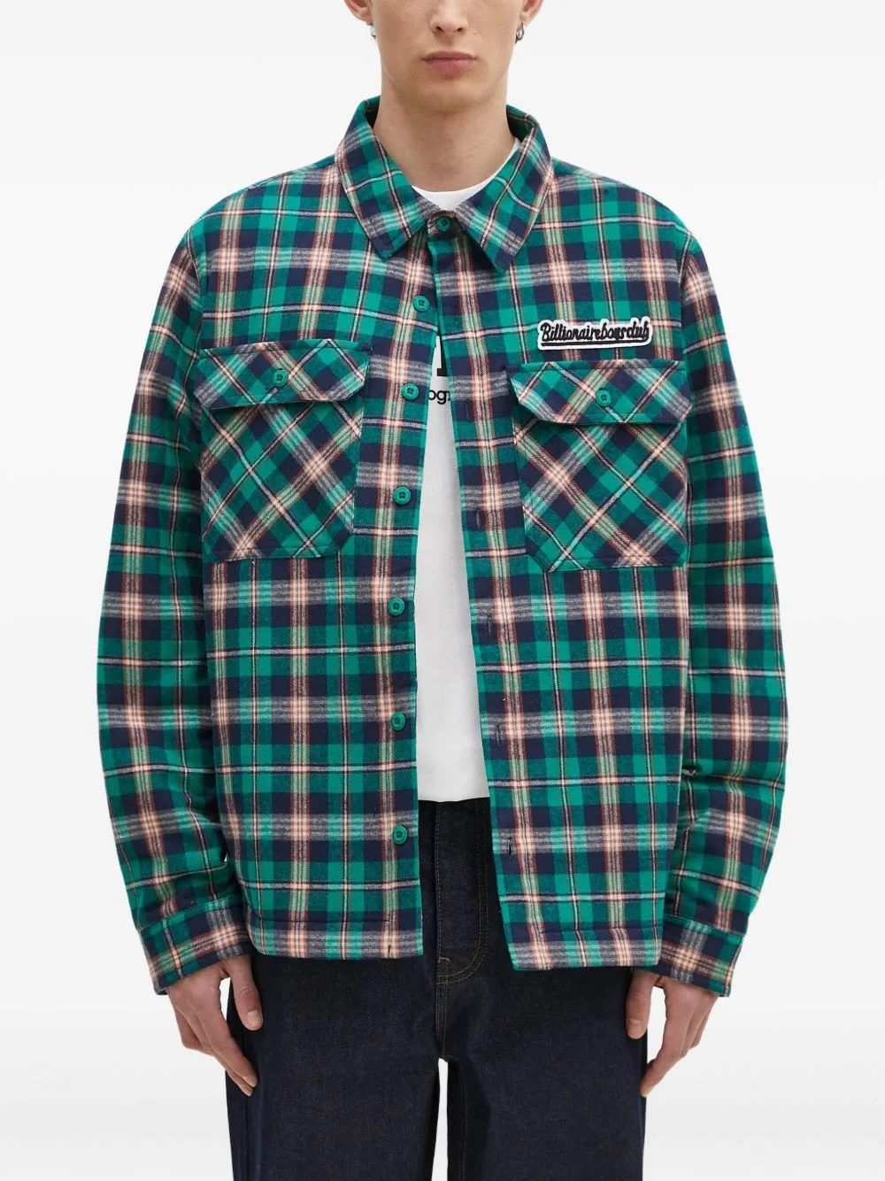 plaid shirt jacket Highlights - Green - Chest pockets - Button fastening - Back embroidered logo Imported Composition Polyester 100% Outer: Cotton 100%