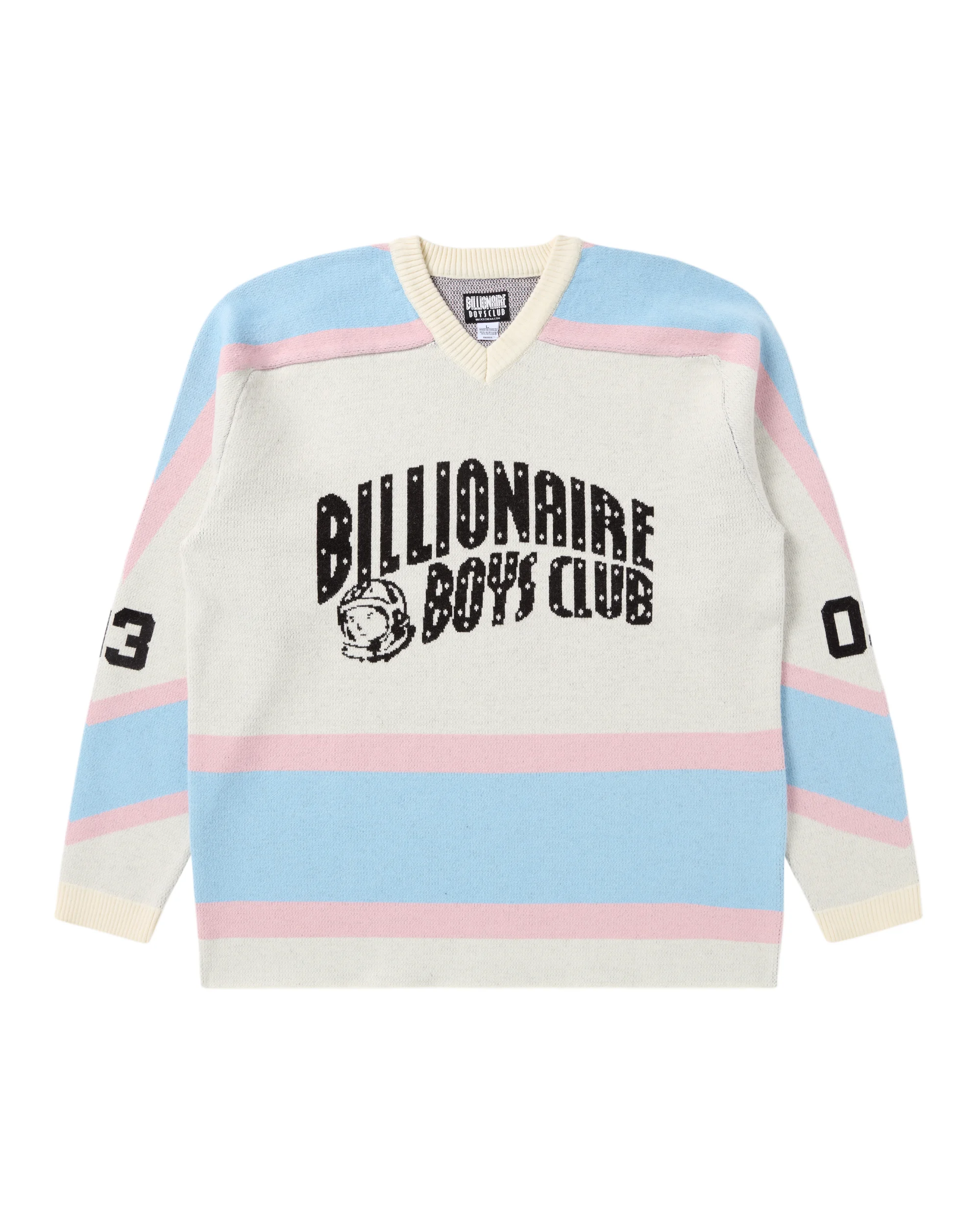 Designed with the Billionaire Boys Club logo and astronaut graphic at the front and a large “03” graphic at the back. - White - Billionaire Boys Club logo and astronaut graphic at front - “03” graphic at back - “03” graphic at sleeves - V-neckline - Long sleeves - 100% Cotton