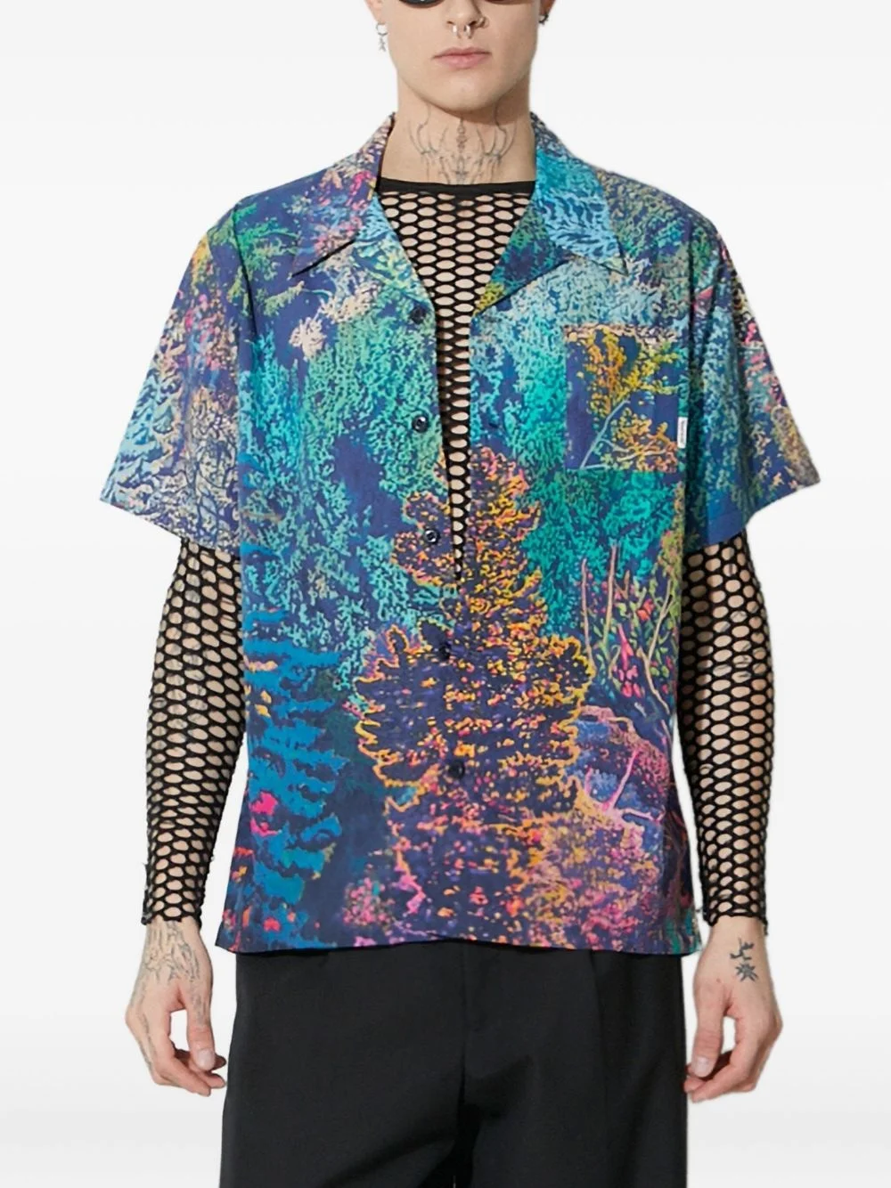 reef-print short-sleeve shirt