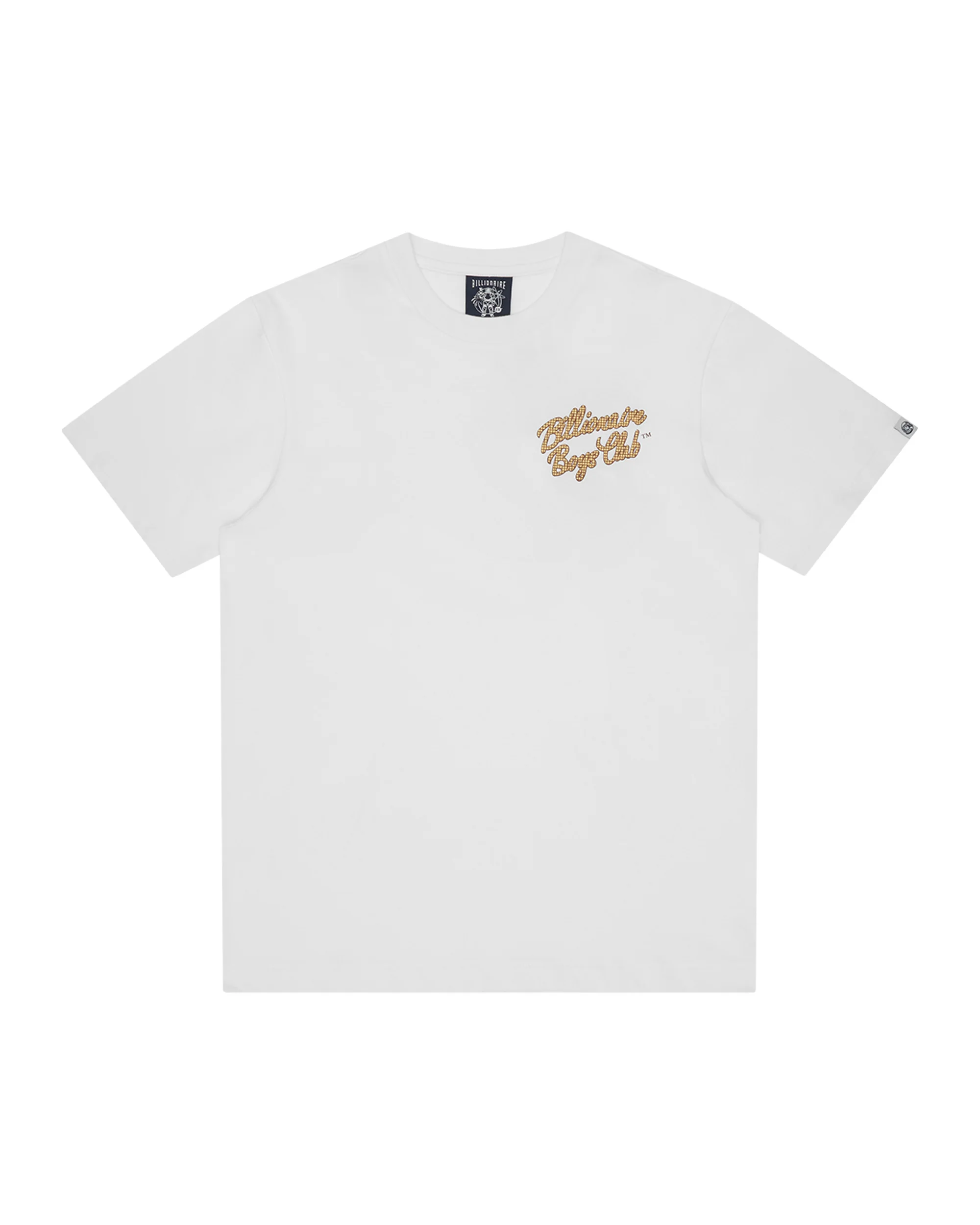 The Script Logo T-shirt features the Billionaire Boys Club Script logo at the chest and repeated on the back. - White - Regular Fit - Vintage ink screen printed Billionaire Boys Club Script logo on the chest - Vintage ink screen printed Billionaire Boys Club Script logo on the back - 100% Cotton