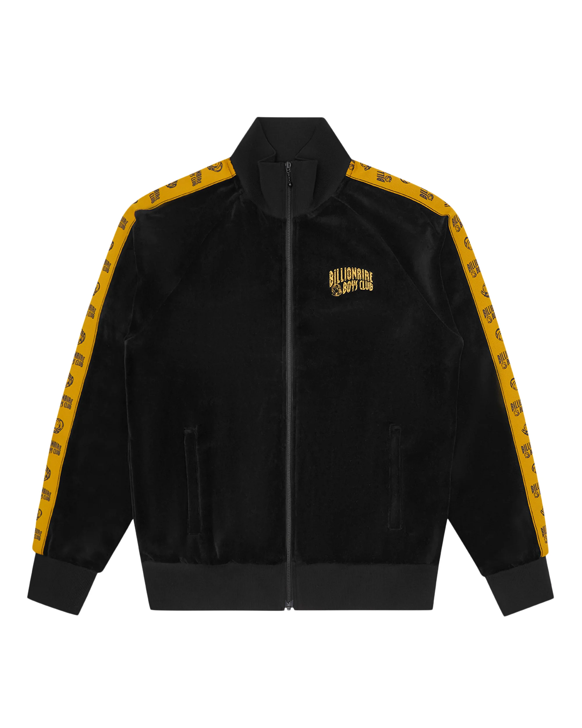 Designed to be worn alongside the Small Arch Logo Taped Velour Track Pants, this Small Arch Logo Taped Velour Track Top presents the Billionaire Boys Club Arch logo embroidered on the chest and full-length woven panelling along the sleeves. - Black - Long sleeves - Branded Billionaire Boys Club side tape - Embroidered - Billionaire Boys Club Arch logo on the chest - Zip-closure - Elasticated waistband and cuffs - Two pockets with zip at front - 75% Cotton, 25% Polyester