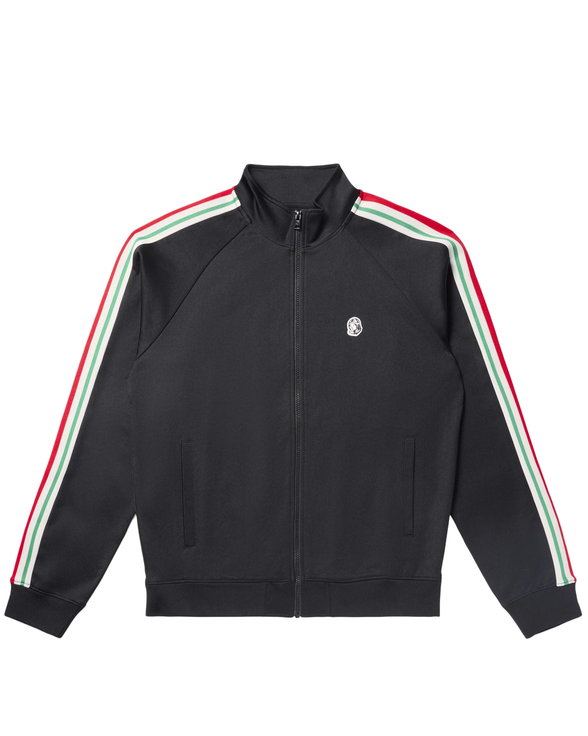The Soundcheck Track Jacket features a front zipper and showcases a Helmet logo patch on the left chest, complemented by the Script logo embroidered on the back. - Black - Front Zipper - Helmet logo back on the front - Script logo on the back - 55% Cotton, 45% Polyester