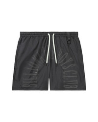 Nylon shorts featuring an adjustable waistband, a key clip on the front, and a tonal Billionaire Boys Club print. - Black - Adjustable waistband - Waist key clip - Tonal screen print graphic - 100% Nylon