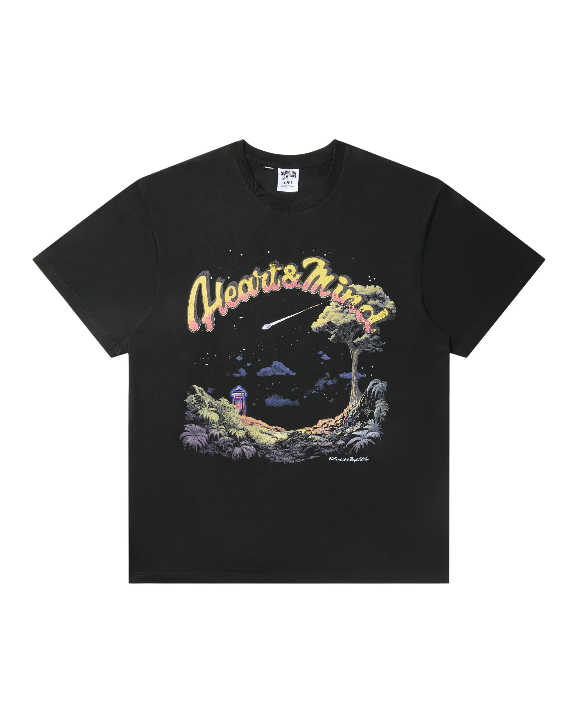 The UFO Tee displays a space-themed design on the front and has the Standing Astronaut printed on the back neck. - Black - Screenprinted graphic on the front - Standing Astronaut printed the back - 100% Cotton