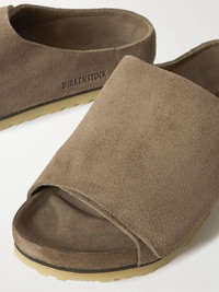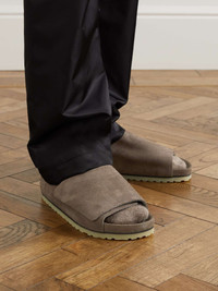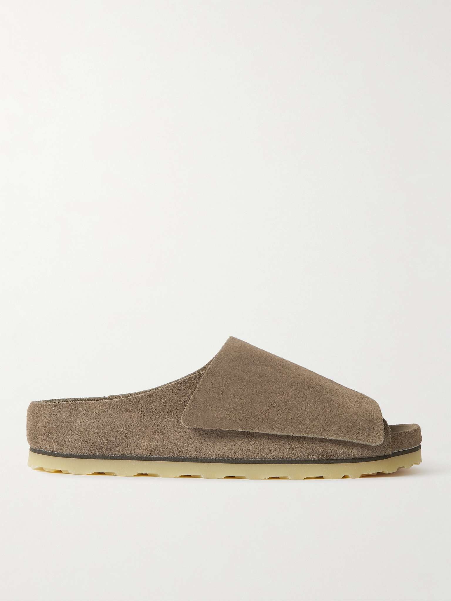 Designed in collaboration with Fear of God, Birkenstock 1774's 'Los Feliz' sandals tap into the LA label's minimalist cool. They're crafted from supple suede and set on the footwear brand's signature moulded footbeds. Don't be afraid to pair them with relaxed tailoring. Size & Fit - EU 39 = UK 5.5/ US 6 - EU 40 = UK 7/ US 7 - EU 41 = UK 7.5/ US 8 - EU 42 = UK 8/ US 9 - EU 43 = UK 9/ US 10 - EU 44 = UK 9.5/ US 11 - EU 45 = UK 10.5/ US 12 - EU 46 = UK 11.5/ US 13 - Only available in full sizes, go up to the nearest whole size if you take a half size - Narrow fit Details & Care - Brown suede (Calf) - Designer colour: Ash