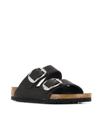 black leather and rubber black leather open toe logo buckle fastening branded footbed open back flat sole - Color: BLACK - Made in: Germany - Designer Style ID: 1011075 ARIZONA BLACK Composition and care Leather: 100.0%