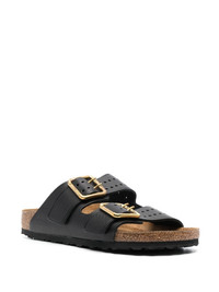 Arizona Bold leather sandals [ SKU: 10198290988 ] black leather logo-engraved buckle perforated detailing double buckle fastening gold-tone hardware round toe open toe slip-on style branded footbed EVA midsole flat rubber sole Reference 1022515BLACK Made in Germany Size and Fit Narrow width
