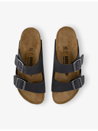 PRODUCT DETAILS - Birkenstock leather sandals - 100% leather - Slips on - Round open toe, double straps at front, logo engraved buckles, contrast padded footbed, raised jagged sole, metal hardware, grained finish - Specialist leather clean - Upper: 100% leather - Lining: 100% leather - Sole: 100% EVA Ref: R04435121