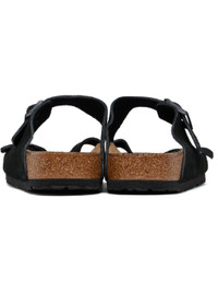 Suede slip-on sandals in black. · Adjustable pin-buckle straps at vamp · Logo embossed at inner side · Logo stamp at molded suede footbed · Cork midsole · Treaded rubber sole · Logo-engraved black hardware Supplier color: Black