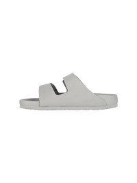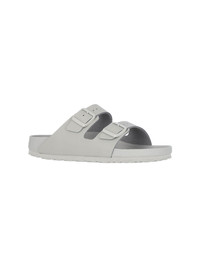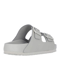 BIRKENSTOCK 'ARIZONA' SANDALS IN GREY LEATHER IN MINERAL TONES WITH ROUND TOE, ADJUSTABLE TOP STRAPS, SILVER METAL BUCKLE DETAIL WITH ENGRAVED LOGO, SLIP-ON FIT, ANATOMICAL CORK AND LATEX FOOTBED, TONAL E.V.A. SOLE. PRODUCT INFO PRODUCT CODE 1026807MINERAL GRAY COMPOSITION: 100% LEATHER MADE IN: GERMANY - SOLE: 100% RUBBER