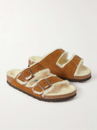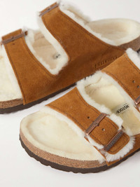 Birkenstock's 'Arizona' sandals are a treat for the feet, featuring the label's signature controured footbeds made even more comfortable with cosy shearling linings. Crafted in Germany, they have supple suede straps and shock-absorbent rubber and cork soles. Size & Fit - EU 39 = UK 5.5/ US 6 - EU 40 = UK 7/ US 7 - EU 41 = UK 7.5/ US 8 - EU 42 = UK 8/ US 9 - EU 43 = UK 9/ US 10 - EU 44 = UK 9.5/ US 11 - EU 45 = UK 10.5/ US 12 - EU 46 = UK 11.5/ US 13 - Fits true to size, take your normal size - Only available in full sizes, go up to the nearest whole size if you take a half size - Regular fit Details & Care - Brown suede - Contoured shearling and cork-latex footbeds, rubber soles - Buckle fastenings - Designer colour: Mink - This item has been imported