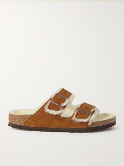 Shoes don't come much more comfortable than Birkenstock's 'Arizona' sandals. This pair is handcrafted from plush suede, set on comfortable EVA soles and lined with fluffy shearling so they feel like a real indulgence to slip on. Size & Fit - EU 39 = UK 5.5/ US 6 - EU 40 = UK 7/ US 7 - EU 41 = UK 7.5/ US 8 - EU 42 = UK 8/ US 9 - EU 43 = UK 9/ US 10 - EU 44 = UK 9.5/ US 11 - EU 45 = UK 10.5/ US 12 - EU 46 = UK 11.5/ US 13 - Fits true to size, take your normal size - Only available in full sizes, go up to the nearest whole size if you take a half size - Regular fit Details & Care - Black suede (Cow) and shearling (Sheep) - Contoured shearling and cork footbeds, EVA soles - Buckle fastenings - Birkenstock follows its own size guide, therefore the size stated on the box will differ from the one provided in our size chart. To receive your correct fit, please refer to Size & Fit notes - Made in Germany