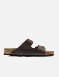 - Birkenstock - Arizona Soft Footbed - Oiled nubuck leather upper - Two straps with adjustable metal pin buckle - Original BIRKENSTOCK soft footbed - Anatomically shaped footbed - Suede lining - EVA sole - Made in Germany - Color: Habana - Material: Leather; Cork ; EVA - See more Sandals and Shoes