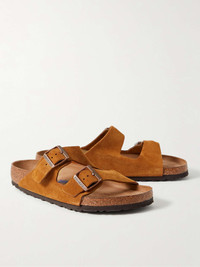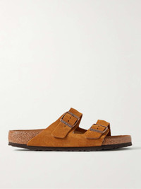 Birkenstock's 'Arizona' sandals are a warm-weather failsafe because they're comfortable and long-lasting. Made with signature cork footbeds, this brown suede pair has tonal copper buckles and rest on gripped rubber soles. Wear them with swim shorts or linen trousers. Size & Fit Fits true to size, please refer to Birkenstock size guide below: - EU 39 = UK 5.5/ US 6 - EU 40 = UK 7/ US 7 - EU 41 = UK 7.5/ US 8 - EU 42 = UK 8/ US 9 - EU 43 = UK 9/ US 10 - EU 44 = UK 9.5/ US 11 - EU 45 = UK 10.5/ US 12 - EU 46 = UK 11.5/ US 13 - Regular fit - Only available in full sizes, go up to the nearest whole size if you take a half size Details & Care - Brown suede - Buckle fastenings - Designer colour: Mink - Birkenstock follows its own size guide, therefore the size stated on the box will differ from the one provided in our size chart. To receive your correct fit, please refer to Size & Fit notes