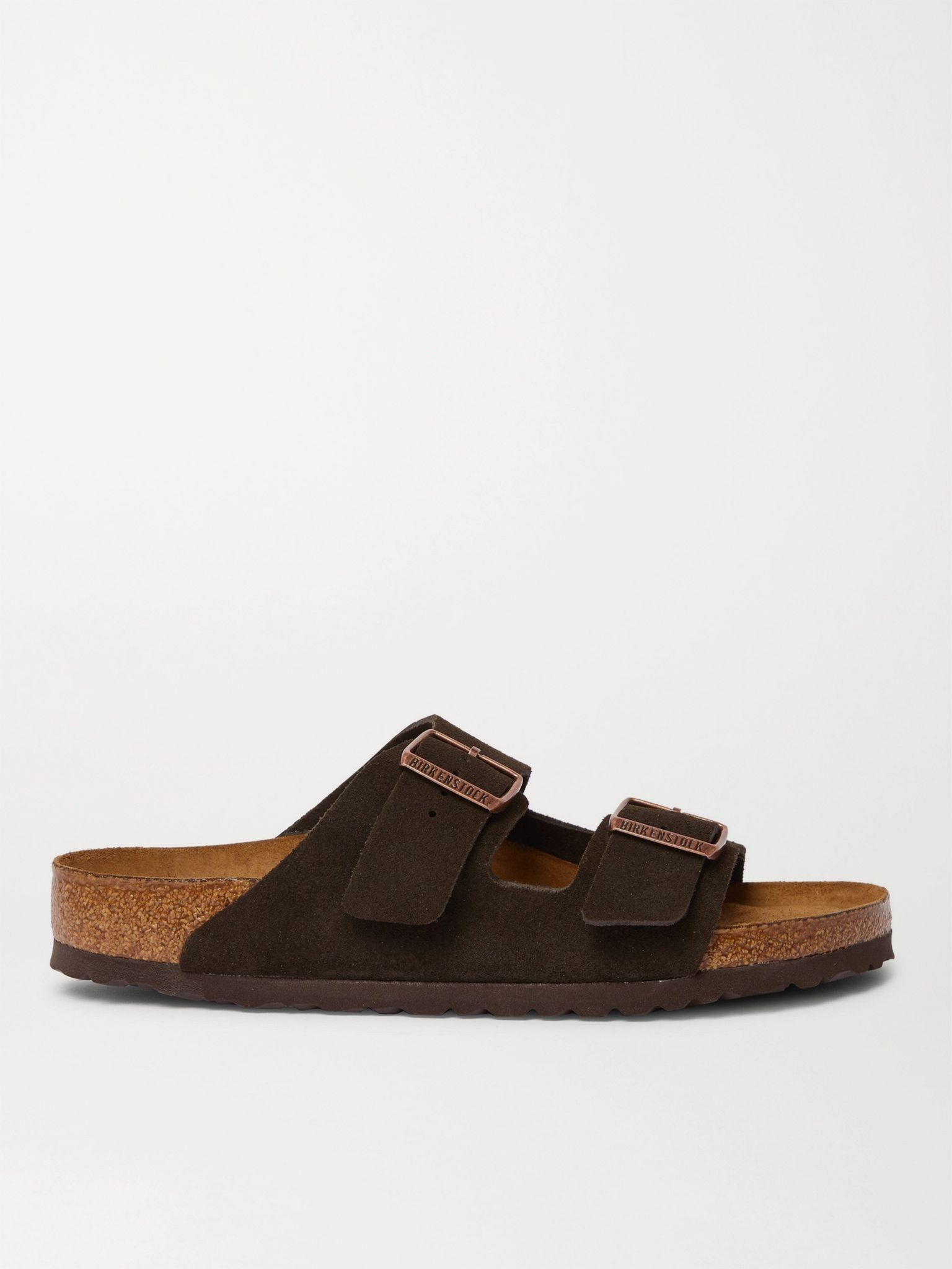 Birkenstock has spent almost 250 years perfecting the comfort of its shoes. Crafted in Germany from supple suede that will break in nicely, these 'Arizona' sandals are set on shock-absorbent rubber and cork soles and have contoured footbeds for arch support. Wear it with: [Officine Generale Shorts id1248872], [Officine Generale Shirt id1248862], [Officine Generale T-shirt id1248819], [Le Gramme Bracelet id1113219]. Size & Fit Fits true to size, please refer to Birkenstock size guide below: - EU 39 = UK 5.5/ US 6 - EU 40 = UK 7/ US 7 - EU 41 = UK 7.5/ US 8 - EU 42 = UK 8/ US 9 - EU 43 = UK 9/ US 10 - EU 44 = UK 9.5/ US 11 - EU 45 = UK 10.5/ US 12 - EU 46 = UK 11.5/ US 13 - Regular fit Details & Care - Dark-brown suede (Cow) - Contoured suede and cork footbeds, rubber soles - Buckle fastenings - Designer colour: Mocha - Birkenstock follows its own size guide, therefore the size stated on the box will differ from the one provided in our size chart. To receive your correct fit, please refer to Size & Fit notes