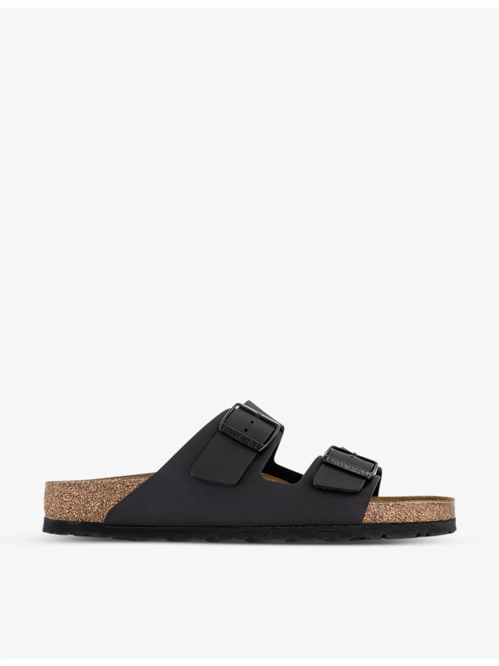 PRODUCT DETAILS - Birkenstock leather sandals - 100% leather - Slips on - Round open toe, double straps at front, logo engraved buckles, contrast padded footbed, raised jagged sole, metal hardware - Specialist leather clean - Upper: 100% leather - Lining: 100% suede - Sole: 100% EVA Ref: R04196475