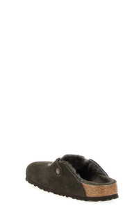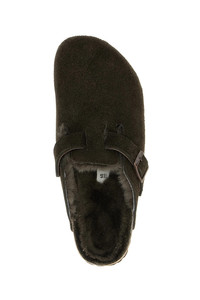 cod. 1020529MOCCA Suede Boston sabots, shearling lining, strap with adjustable metal buckle, anatomically shaped cork and latex footbed, EVA sole. Color: Brown Size & Fit: EU UNISEX - narrow fit Composition: 100% calfskin leather (Bos Taurus) Made in: Germany PROMO CODE NOT APPLICABLE