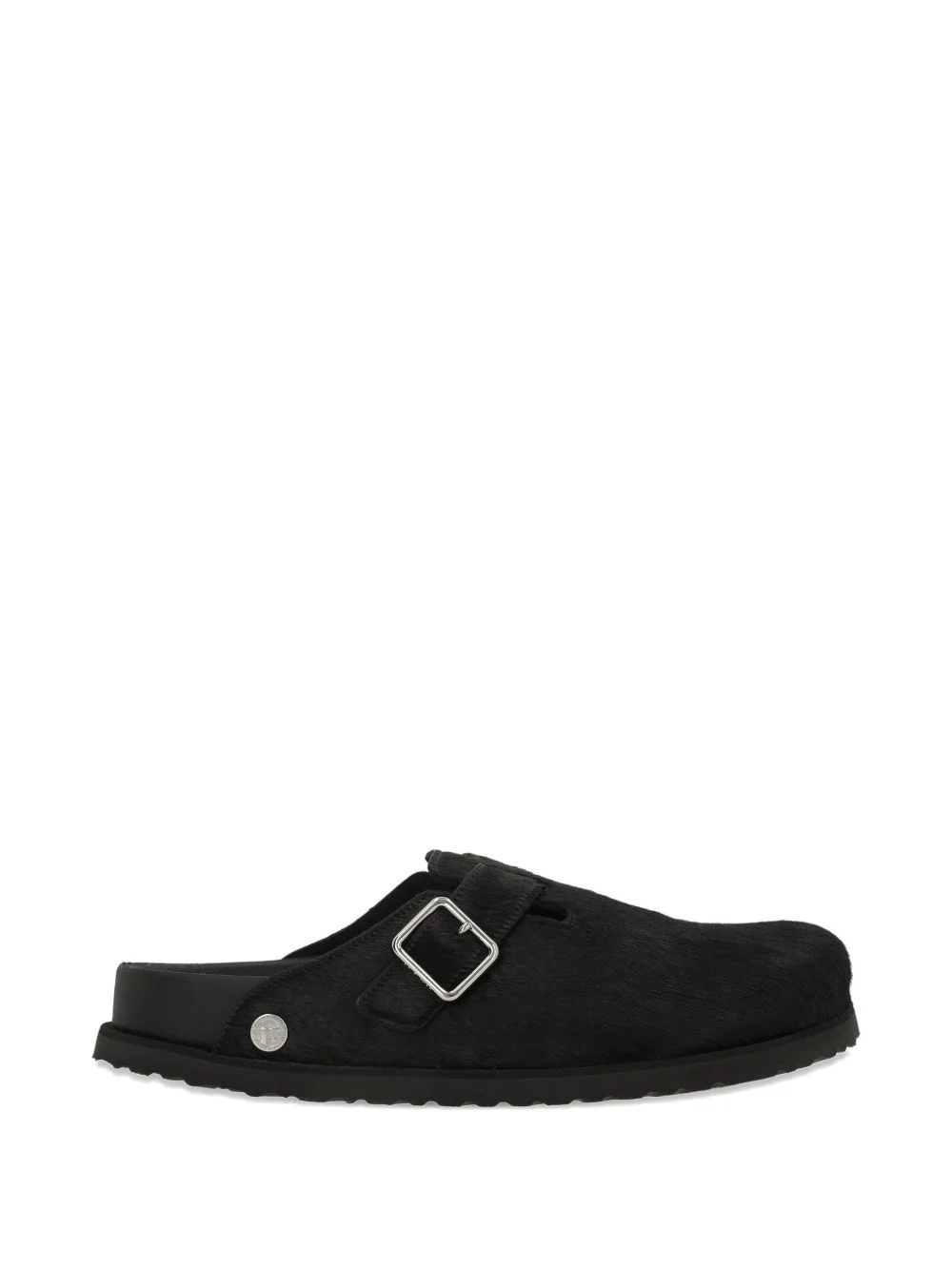 Boston Fur mules Highlights - Black - Metal buckle - Rounded toe - Metal logo - Flat sole Made in Italy Composition Outer: Calf Hair 100% Lining: Cork 100%, Sheep Skin/Shearling 100% Sole: Rubber 100%