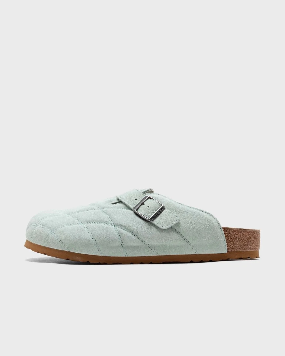 The product Birkenstock - Boston Quilted Leve in the color AQUA is available at BSTN.Use our Wishlist feature to get notified when the product or your desired size is available. This item is partly made of certified, recycled and sustainable materials, reducing the global amount of waste and conserving primary raw materials. Discover a wide range of sustainable items now at BSTN! Article Number: 1028754 Gender: Men, Women Color: AQUA Material: 70% Leather, 30% Corc