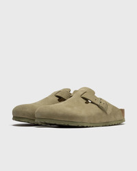 The Birkenstock Boston clog is a true classic that can easily be worn year-round. This version is made of soft suede with color coordinated buckles with textile haptics in a matte design and a color coordinated outsole. Article number: 1025788 Gender: men,women Color: FADED KHAKI Material: Full: 100% Leather/Synthetic