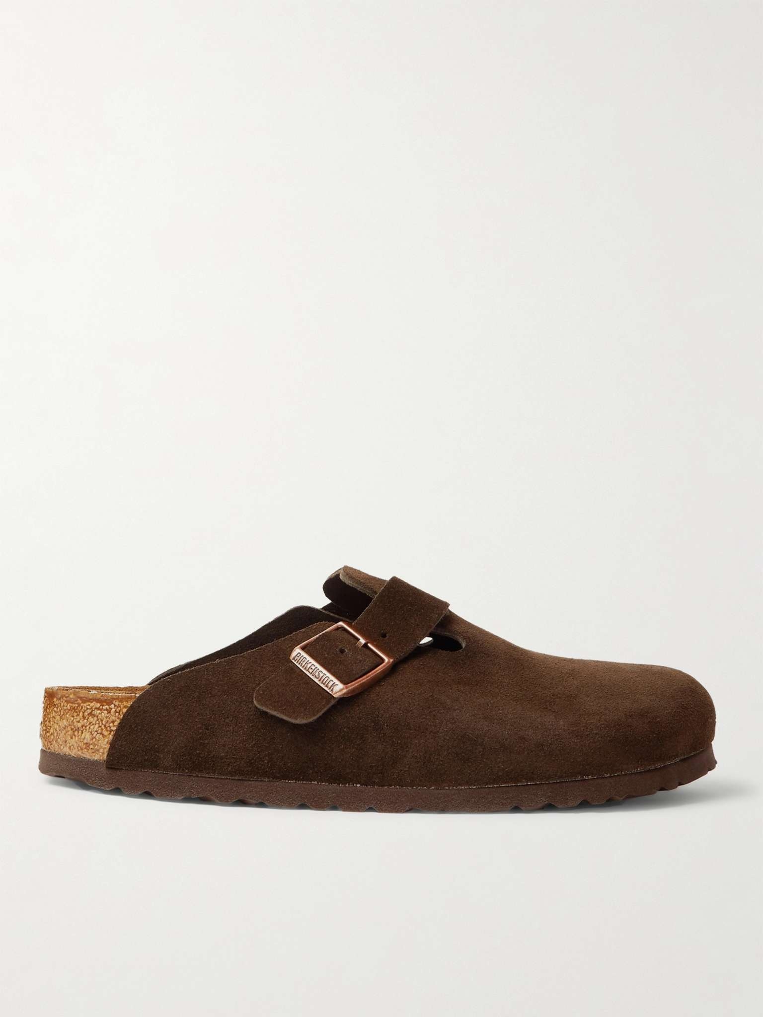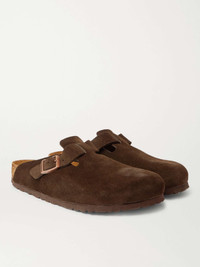 Don't be fooled into thinking Birkenstock clogs are simply chosen for comfort and not style - they're worn by countless well-dressed men. Made in Germany from soft suede, this closed-toe 'Boston' pair is built with the brand's signature moulded footbeds and gripped rubber soles. The buckled strap can be adjusted for the perfect fit. Size & Fit - EU 39 = UK 5.5/ US 6 - EU 40 = UK 7/ US 7 - EU 41 = UK 7.5/ US 8 - EU 42 = UK 8/ US 9 - EU 43 = UK 9/ US 10 - EU 44 = UK 9.5/ US 11 - EU 45 = UK 10.5/ US 12 - EU 46 = UK 11.5/ US 13 - Regular fit - Only available in full sizes, go up to the nearest whole size if you take a half size Details & Care - Dark-brown suede - Buckle fastenings - Designer colour: Mocha