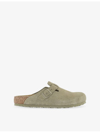 PRODUCT DETAILS - Birkenstock suede clogs - 100% suede - Slips on - Round closed toe, open back, buckle strap at front, branded hardware, signature moulded EVA sole, embossed logo at side - Specialist leather clean - Upper: 100% suede - Lining: 100% suede - Sole: 100% cork Ref: R04347529