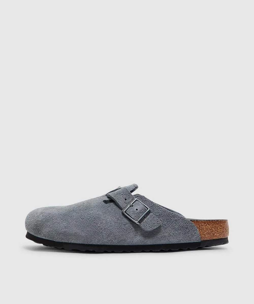 The Boston SFB Sandal see German based brand Birkenstock update their classic clog silhouette with a sleek design. A premium soft foot-bed has been added for optimal comfort and movement whilst retaining the labels signature laid-back style. - Slip on style - Adjustable buckle strap with embossed logo branding - Suede uppers - EVA sole unit - Contoured cork latex base - Moulded footbed - 100% Leather - Made in Germany - Item code: 1030870 Product Information - 4120333