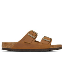 Oiled leather sandals in brown. · Open toe · Adjustable pin-buckle straps at vamp · Logo embossed at inner side · Logo stamp at molded suede footbed · Cork-latex midsole · Treaded rubber sole · Logo-engraved antiqued gold-tone hardware Supplier color: Cognac Upper: leather. Sole: cork, rubber. Made in Germany 251513M234012