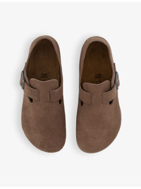 PRODUCT DETAILS - Birkenstock suede shoes - 100% suede - Buckle fastening - Almond closed toe, adjustable pin buckle, branded hardware, cut-out details, raised heel - Specialist leather clean - Upper: 100% suede - Lining: 100% suede - Sole: 100% EVA - Made in Portugal Ref: R04000717