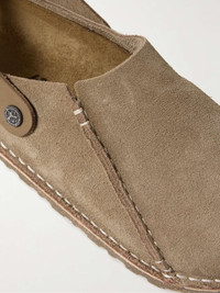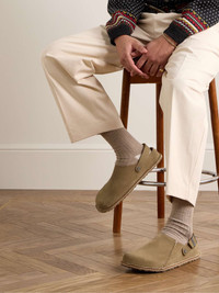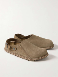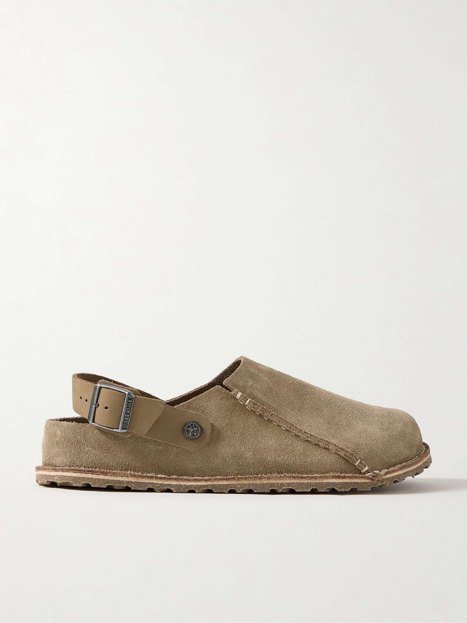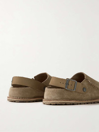 Birkenstock’s 'Lutry Premium' mules have adjustable nubuck ankle straps that you can flip up to wear them as a backless style. Made in Germany from soft suede, they feature natural rubber soles and removable, anatomically mapped insoles for all-day comfort and support. Size & Fit - EU 39 = UK 5.5/ US 6 - EU 40 = UK 7/ US 7 - EU 41 = UK 7.5/ US 8 - EU 42 = UK 8/ US 9 - EU 43 = UK 9/ US 10 - EU 44 = UK 9.5/ US 11 - EU 45 = UK 10.5/ US 12 - EU 46 = UK 11.5/ US 13 - Regular fit Details & Care - Light-brown suede and nubuck (Cow) - Buckle fastening - Birkenstock follows its own size guide, therefore the size stated on the box will differ from the one provided in our size chart. To receive your correct fit, please refer to Size & Fit notes