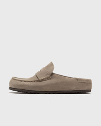The Birkenstock Naples is a half-open moccasin-style clog with eye-catching stitching. The sole consists of a cushioning EVA midsole and a genuine rubber outsole, ensuring a secure and comfortable stance thanks to these two components. The upper material is made from particularly soft suede for a natural design that fits the foot like a second skin. - Anatomically shaped cork-latex footbed - Upper material: suede - Insole: suede - Sole: rubber-EVA sole - Details: moccasin style with eye-catching stitching - Footbed Made in Germany Article Number: 1029675 Gender: Men, Women Color: Taupe Material: 80% Suede, 20% Synthetic
