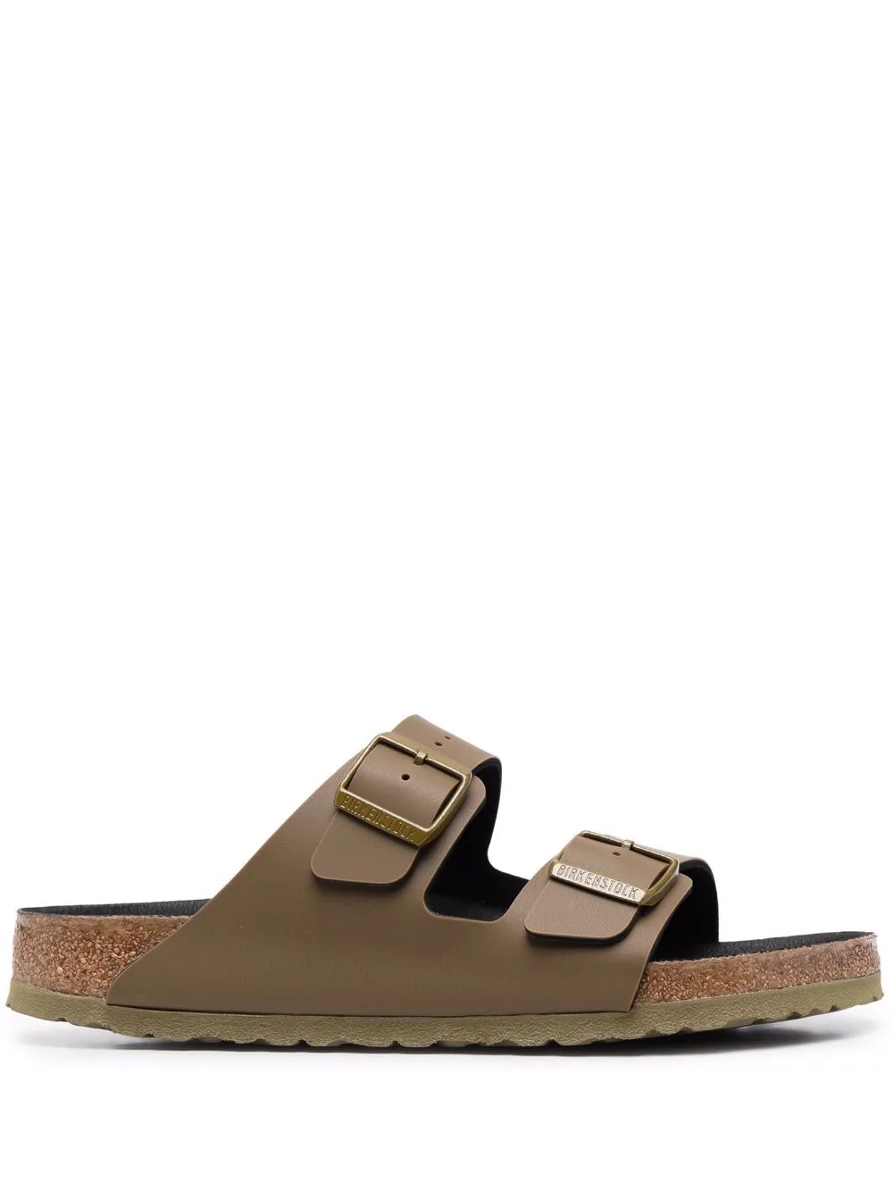 Icy pine green leather Arizona leather sandals from BIRKENSTOCK featuring polished finish, debossed logo to the side, engraved logo, open toe, double buckle fastening, moulded footbed, slip-on style and rubber outsole. Highlights - Icy pine green - Leather - Polished finish - Debossed logo to the side - Engraved logo - Open toe - Double buckle fastening - Moulded footbed - Slip-on style - Rubber outsole Imported Composition lining: Leather 100%,Fabric 100% outer: PVC 100% sole: Rubber 100% Product measurements for size: 42 (EU) Heel: 2 cm (0.8 in) Sole height: 1.5 cm (0.6 in)