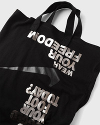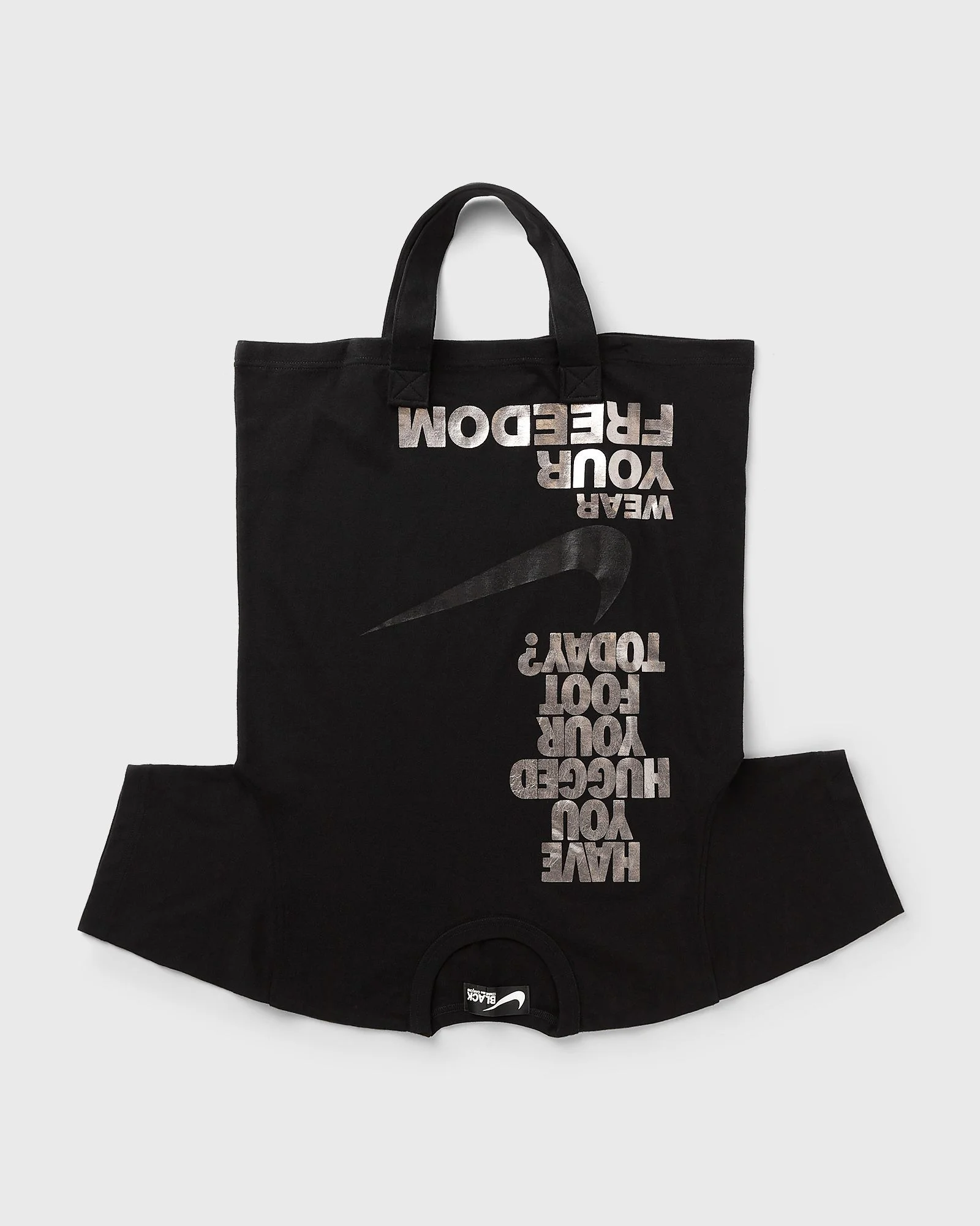 The Comme des Garcons Black x Nike Tote Bag reinterprets a classic design in a striking T-shirt shape. - Carrying handles - Main compartment - Silver-colored graphics - Dimensions: 40 cm x 43 cm Article number: 1P-K203-W25-1 Gender: men,women Color: BLACK Material: 100% Cotton