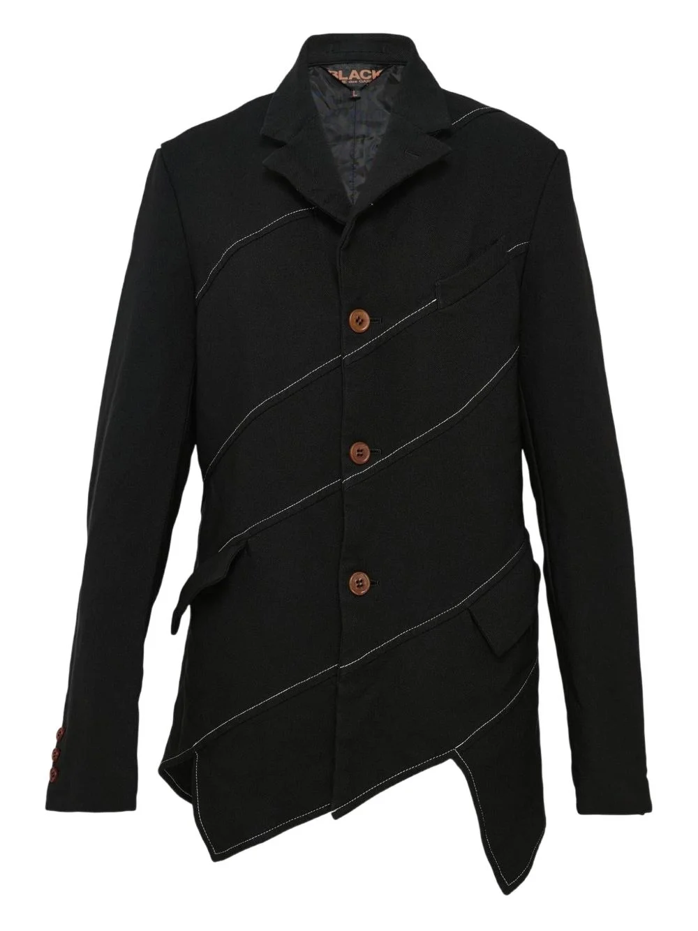 asymmetric-hem blazer Highlights - Black - Diagonal stitching - Button fastening - Notched lapels - Flap pockets - Long sleeves Imported Composition Polyester 100% Washing instructions Hand Wash