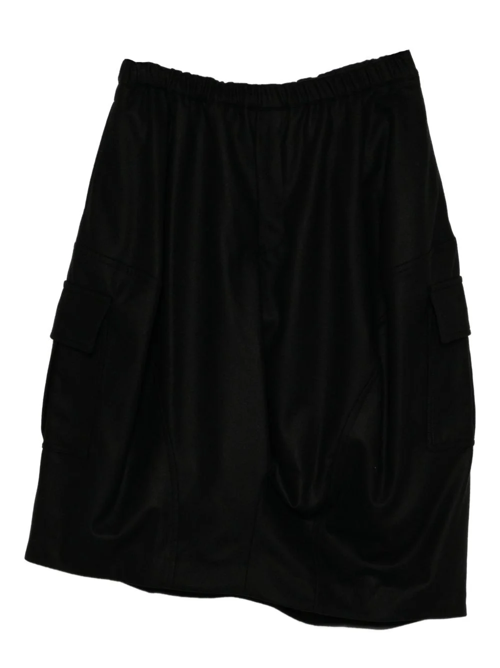 asymmetric pocket skirt Highlights - Black - Elasticated waistband with internal drawstring - Two side inset pockets - Two side cargo pockets - Two rear flap pockets Imported Composition Wool 90%, Nylon 10% Washing instructions Dry Clean Only