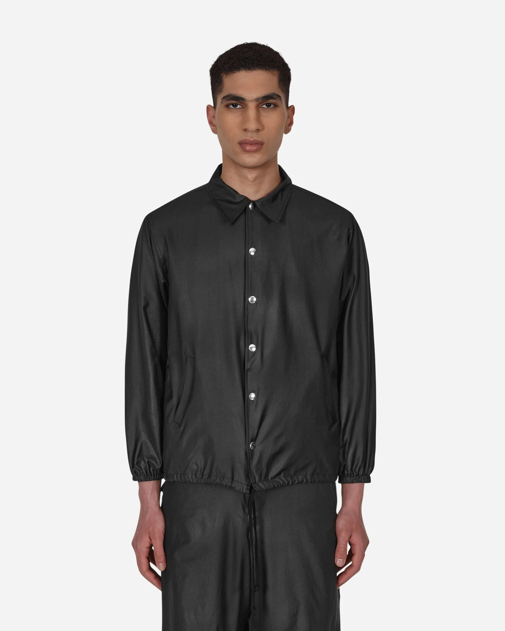 Comme Des Garçons Black Coach Jacket Black - 72% Triacetate, 25% Cellulose, 3% Polyurethane - Lining: 100% Cupro - Point Collar - Snap-Button Closure - Two Side Pockets - Cut-Out Polka Dot Detail at Back - Elasticated Cuffs - Drawstring Hem - Made in Japan - Style Code: 1I-J019-S22 1 SIZE & FIT Model is 6ft 1in/1.86m with 35"/90cm chest and wears size M. Measures (Size M): 45cm Shoulders, 57cm Chest, 57cm Sleeve, 67cm Length, 52cm Hem.