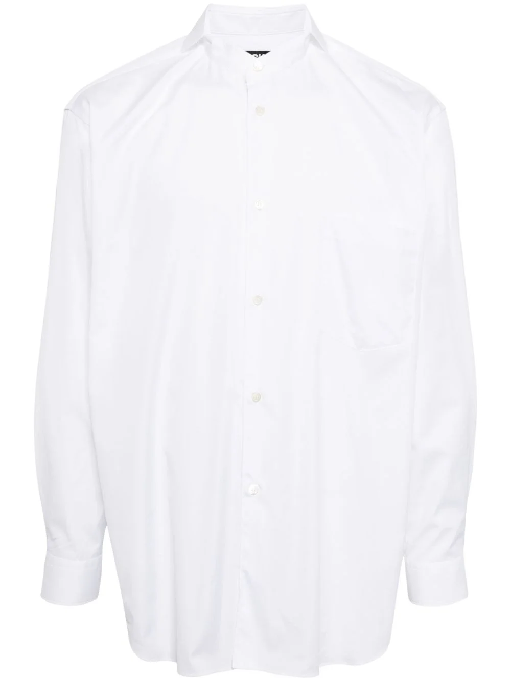 cotton poplin shirt Highlights - Optical white - Cotton - Poplin texture - Asymmetric collar - Long sleeves - Buttoned cuffs - Curved hem - Front button fastening Imported Composition Cotton 100%