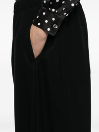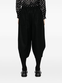 cropped tapered trousers Highlights - Black - Elasticated waistband - Two side inset pockets - Two rear patch pockets Imported Composition Lining: Cupro 100% Outer: Wool 90%, Nylon 10% SIZE & FIT Model measurements Height 5 ft 10 in(1.77 m) Bust/Chest 29.33 in(74.5 cm) Hips 32.28 in(82 cm) Waist 24.01 in(61 cm) FittingInformation This piece is unisex and is designed for a tapered-leg, whether you usually select women's or men's sizes Adjust this piece’s waistband to your preference using the drawstring Made from a midweight non-stretch fabric Washing instructions Dry Clean Only