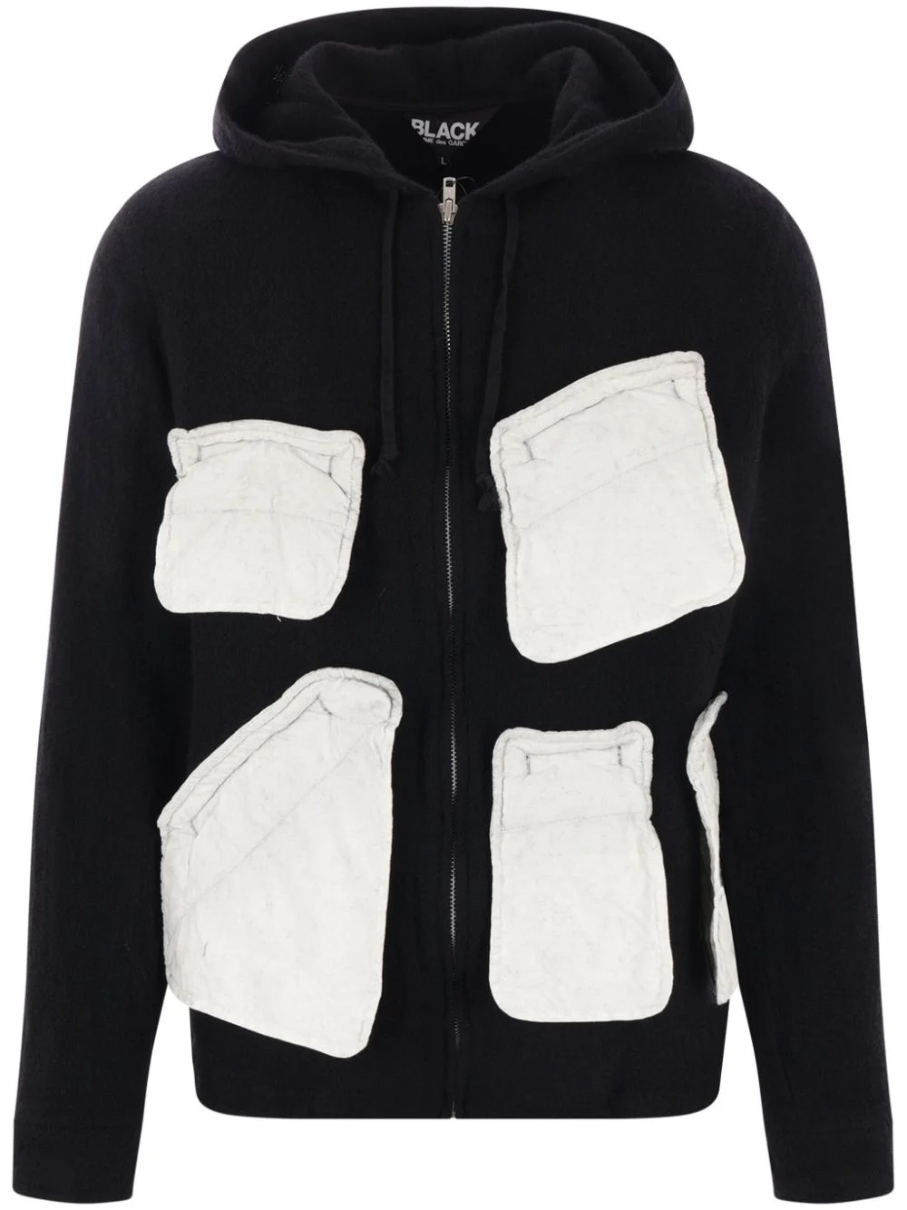 flap-pocket hoodie Highlights - Black/white - Wool blend - Front flap pockets - Classic hood - Front zip fastening - Long sleeves - Straight hem - When buying this unisex item, keep in mind that it is graded in standard men's sizing. Imported Composition Wool 90%, Nylon 10%