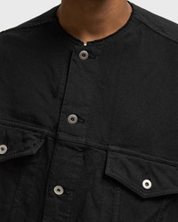 This asymmetrical denim jacket from Comme des Garcons combines classic denim with avant-garde design. The irregular cut and striking details such as raw hems and distressed details give it a modern, experimental touch. - Asymmetrical button placket - Side pockets - Buttoned chest pockets - Raw edges Article number: 1P-J019-W25-1 Gender: men Color: BLACK Material: 100% Polyester