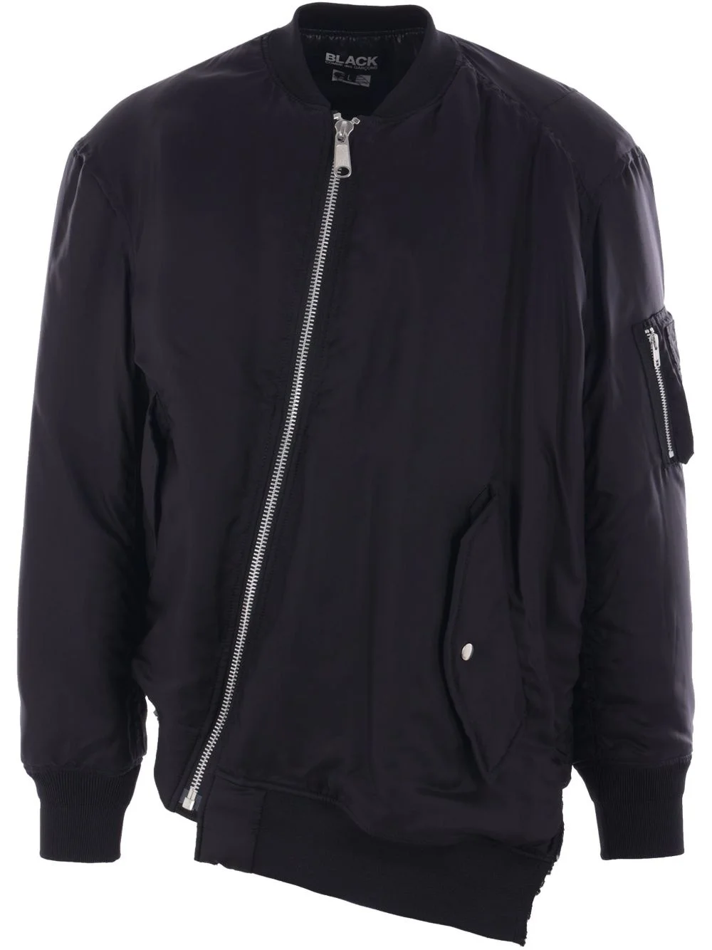 reversible asymmetric bomber jacket. Highlights - Black - Off-centre front zip fastening - Front flap pocket - Sleeve zip pocket - Ribbed cuffs and hem Imported Composition Lining: Polyester 100% Outer: Cupro 100% Washing instructions Read Manufacturer Guidelines
