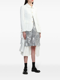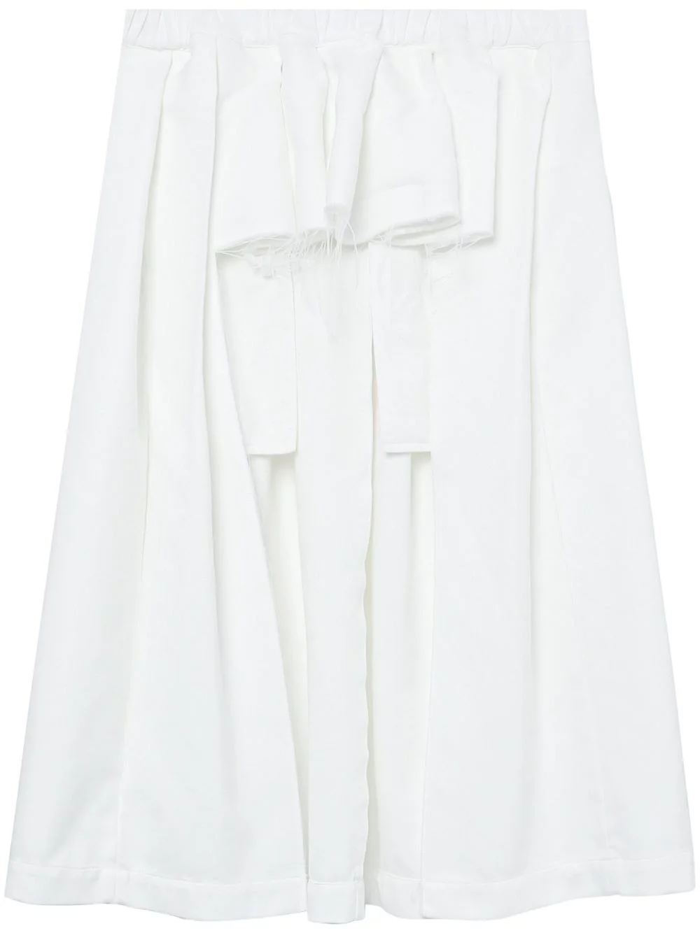 ruffle-detail pleated midi skirt Highlights - Optical white - Ruffled detailing - Fully pleated - Raw-cut finish - Elasticated waistband - High-waisted - Straight hem - Mid-length - When buying this unisex item, keep in mind that it is graded in standard men's sizing. Imported Composition Polyester 100%