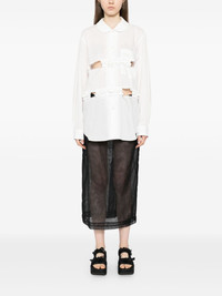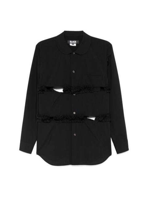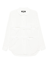 ruffle peter pan-collar shirt Highlights - White - Front button fastening - Buttoned cuffs - Cut-out detailing - When buying this unisex item, keep in mind that it is graded in standard men's sizing. Imported Composition Polyester 100% SIZE & FIT Model measurements Height 6 ft 2 in(1.87 m) Bust/Chest 33.07 in(84 cm) Hips 35.43 in(90 cm) Waist 26.77 in(68 cm) FittingInformation This piece is unisex – expect a slim fit if you usually select men's sizing; expect a looser fit if you usually select women's sizes Made from a midweight non-stretch fabric