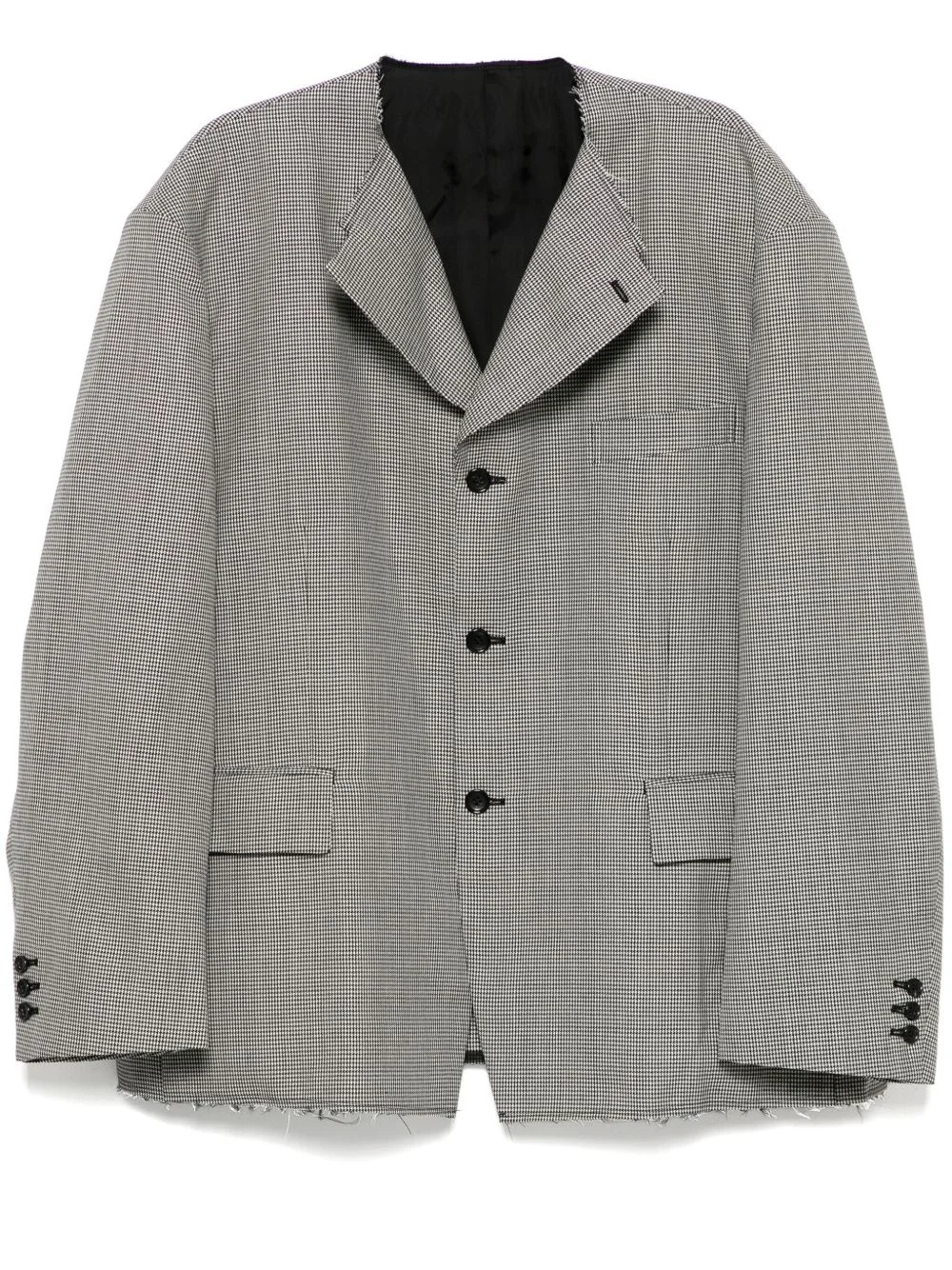 single-breasted blazer Highlights - Black/white - Front button fastening - Chest welt pocket - Two front flap pockets Imported Composition Lining: Cupro 100% Outer: Wool 100% SIZE & FIT Model measurements Height 6 ft 2 in(1.87 m) Bust/Chest 33.07 in(84 cm) Hips 35.43 in(90 cm) Waist 26.77 in(68 cm) FittingInformation Designed to be unstructured, offering a loose fit throughout The internal shoulder pads offer a structured shape Made from a midweight non-stretch fabric