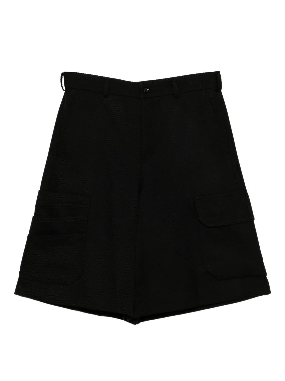 wool shorts Highlights - Black - Front button and zip fastening - Two side slash pockets - Two side patch pockets - Two rear flap pockets Imported Composition Wool 100% Washing instructions Dry Clean Only