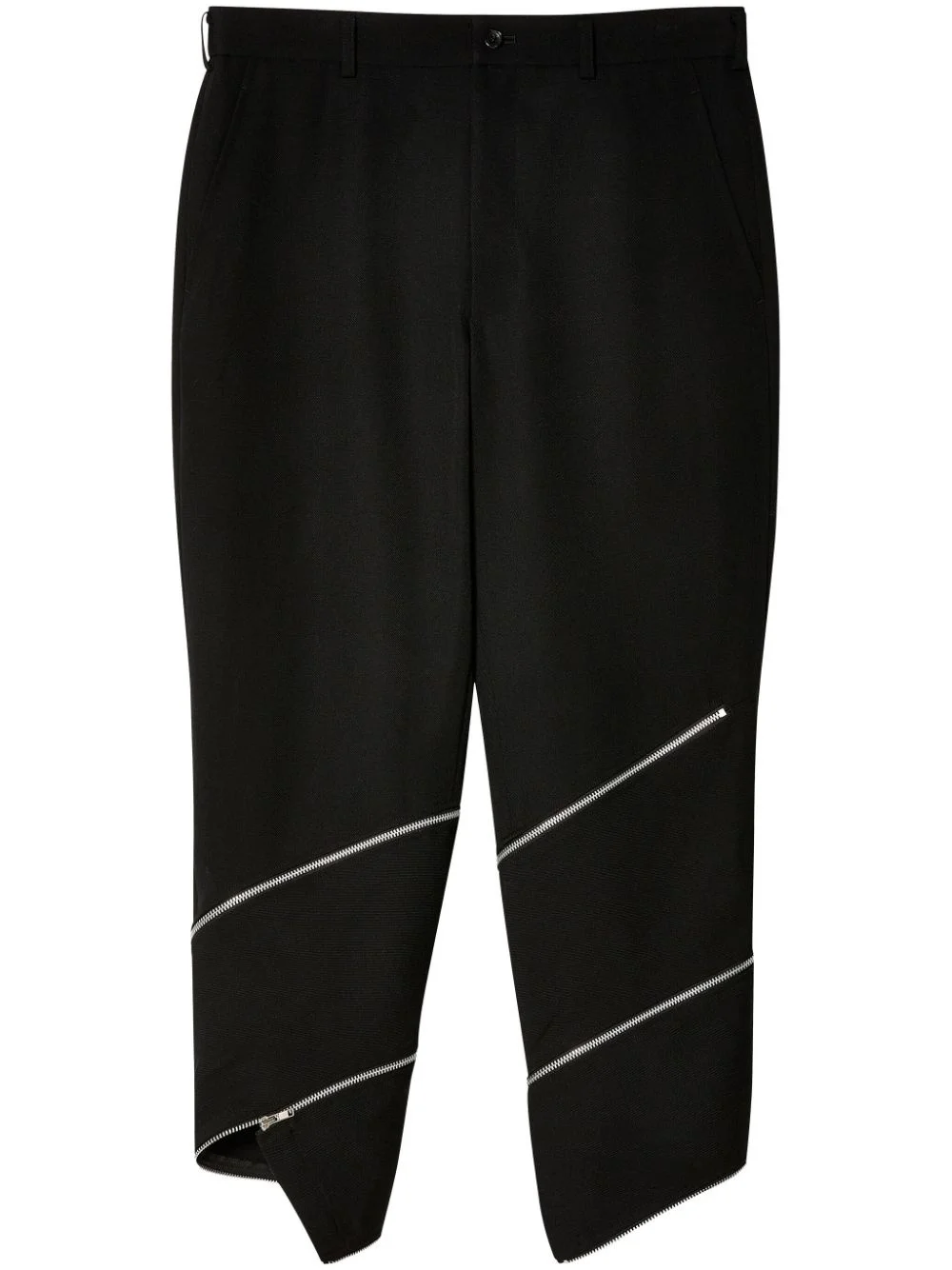 zip wool cropped trousers Highlights - Black - Wool - Decorative zip detailing - Concealed fly and button fastening - Belt loops - Rear flap pocket - Rear welt pocket - Asymmetric hem - Cropped leg - When buying this unisex item, keep in mind that it is graded in standard men's sizing. Imported Composition Wool 100%
