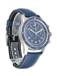 2023 unworn Air Command Flyback Chronograp 42.5mm Highlights - 2023 - 42.5mm - Blue - Round face - Arabic dial - Baton hands - Titanium case - Leather strap - Automatic movement - Sapphire glass - Screw-down crown - Two chronograph pushers - Chronograph counters - Pin-buckle fastening - This piece is new and unworn. - All repairs of the movement of the watch and the repairs of water-resistant watches with water damage are covered by the boutique two-year warranty. - Original box, papers and boutique certificate included. - An inspection by the boutique-certified watchmakers guarantees authenticity. Imported Composition Titanium 100% SIZE & FIT Measurement Case size 1.42 in(36.2 mm)