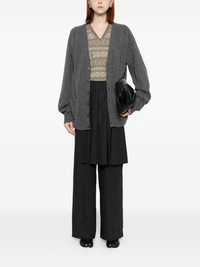 sphere-pad cardigan Highlights - Smoke grey - Front button fastening - Two side patch pockets - Ribbed cuffs and hem - Long sleeves Imported Composition Wool 100% SIZE & FIT Model measurements Height 5 ft 10 in(1.77 m) Bust/Chest 29.33 in(74.5 cm) Hips 32.28 in(82 cm) Waist 24.01 in(61 cm) FittingInformation This unisex piece is designed for a loose fit whether you usually select women's or men's sizes The ribbed hem offers a close, comfortable fit Made with a midweight knit, this piece offers some stretch