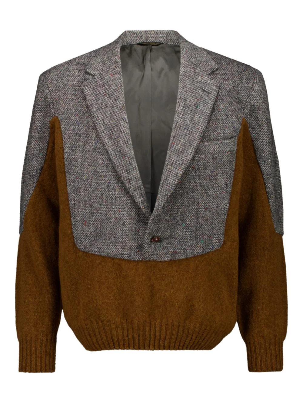 top jacket sweater Highlights - Brown - Wool - Button fastening - Lapel collar - Knitted hem - Tweed panel Imported Composition Wool 100% Washing instructions Read Manufacturer Guidelines