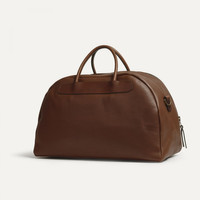 BOWLING TRAVEL BAG A vintage icon transposed to travel, the Bowling bag is a retro nugget in the collection. Its rounded silhouette, luxurious leather and impeccable fit recall the sport-chic bags of the 50s and 60s. Behind this allure is a piece designed to last. Designed for both short and long trips, it offers a compact cabin format with a vast 30 L volume, accessible via a large zipped opening, and ergonomic handles reinforced with braided cord. Made to the highest standards in our workshop in Aveyron, it embodies the alliance of design and craftsmanship. Size: W 47 cm x H 29 cm x D 20 cm Volume: 30 liters. Made in France. The bag can be completed by a removable leather pain brule shoulder strap with felt-lined shoulder tab. MATERIALS The Bowling bag is made from full-grain vegetable-tanned leather, using a process based on mimosa, acacia and chestnut. This natural tanning provides exceptional durability, enhanced waterproofing and a soft, supple feel. Over time, the leather develops a remarkable patina, making each bag a unique piece, imprinted with your history. The handles are reinforced with a braided cotton cord, for comfortable carrying from the very first day, and perfect hold over time. Each bag is entirely handmade in our Saint-Georges-de-Luzencon workshop, and signed by the craftsman who made it. A piece of leatherwork designed to last, beautiful for everyday use and ever more endearing as the years go by. - Water-resistant, vegetable-tanned full-grain leather. - Soft, natural finish. - Velvet-like sanded back finish. - Removable inside zipped pocket in cotton canvas, dated and signed by the craftsman who made it. - Zippered closure. YKK zipper SIZE - Cabin dimensions. - External dimensions: W 47 x H 29 x D 20 cm - Volume: 30 liters.